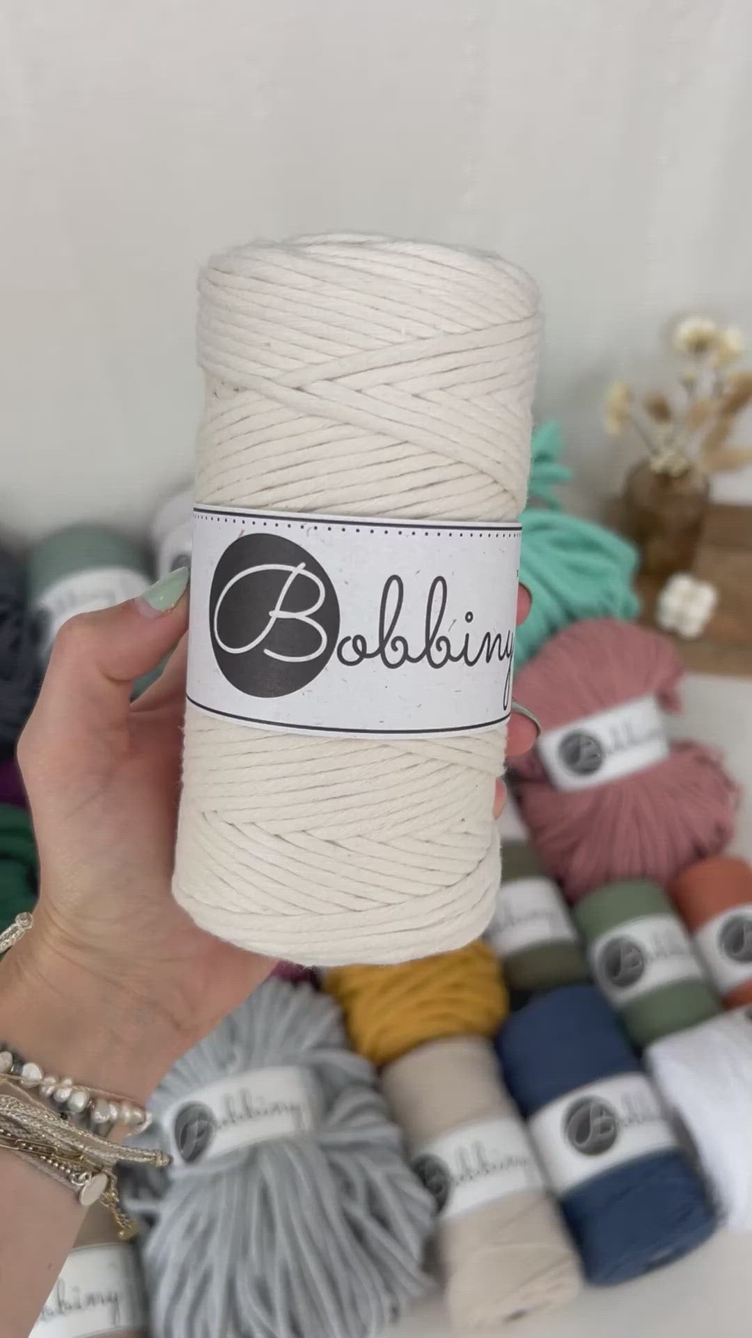 If you are looking for excellent macrame yarn, you cannot avoid Bobbiny. The thick and at the same time soft yarn is also perfect for beginners thanks to its uncomplicated handling. In addition to the excellent quality, Bobbiny yarns are characterized by their long service life and are made from 100% recycled material. You can wonderfully combine the different colors of the Bobbiny yarns.